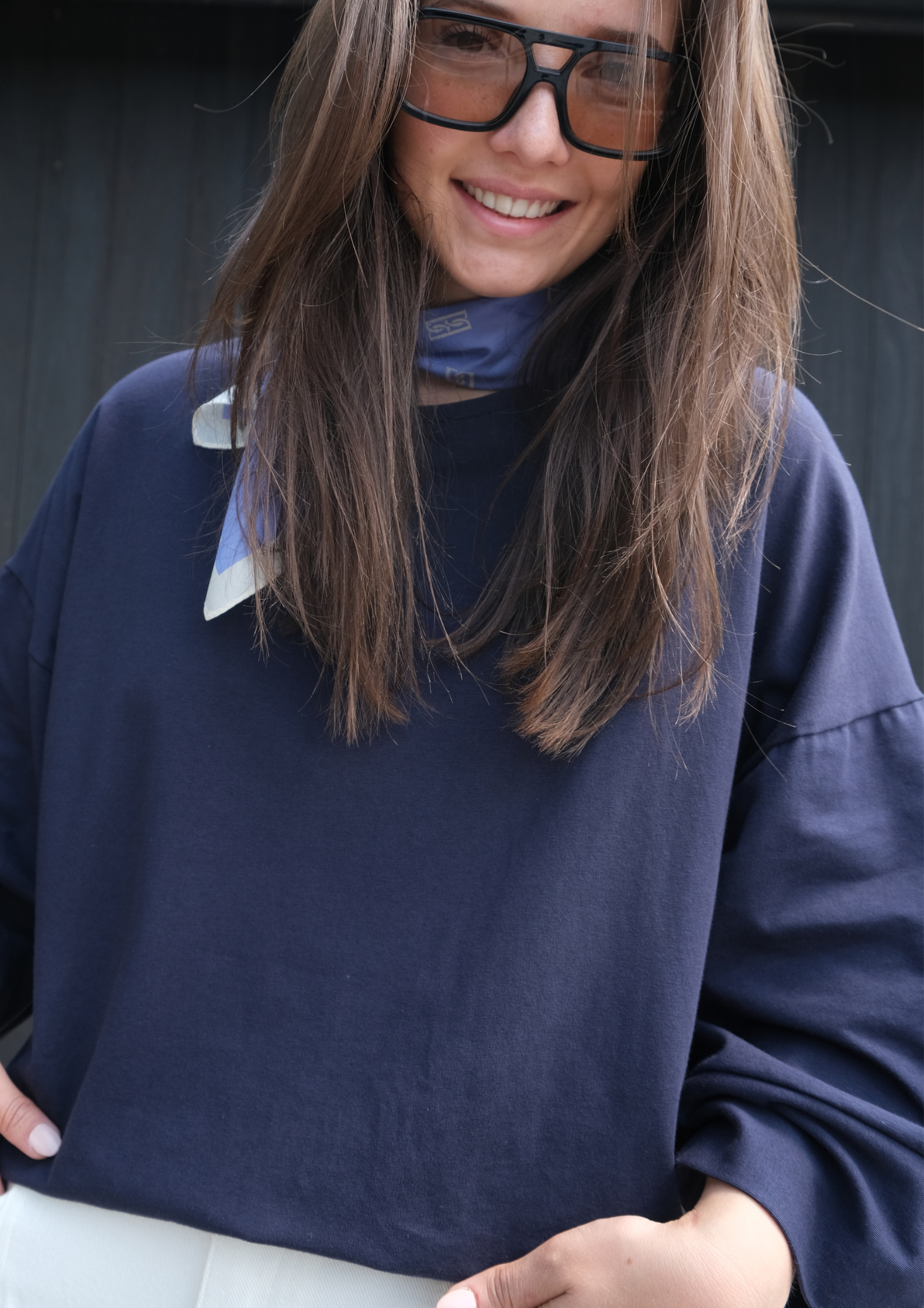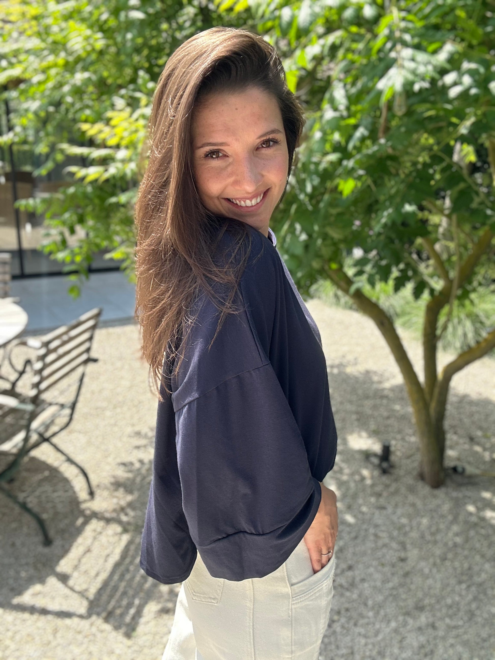 LEA Tee Navy – Casual T-shirt met wijde uitlopende mouwen