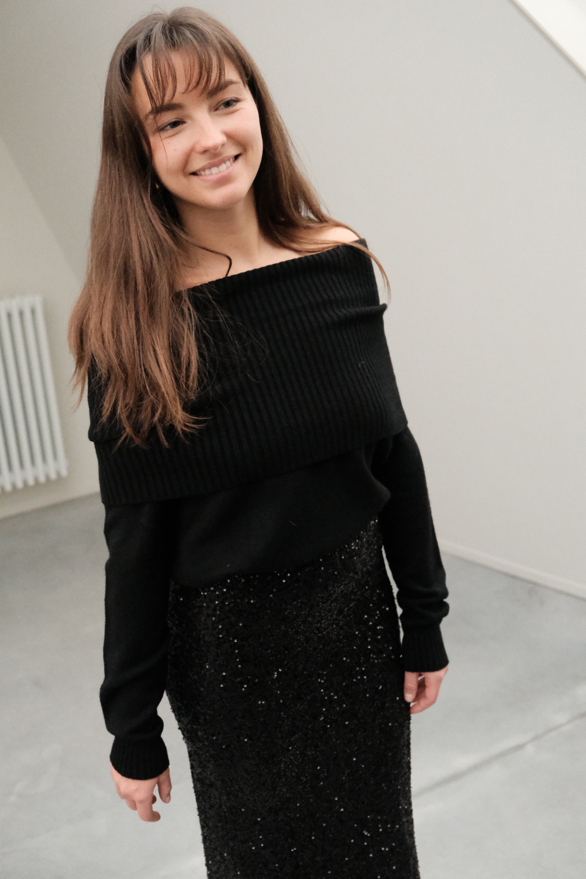 This cashmere-touch sweater with a large collar is the ultimate blend of softness and style. Perfect for those cozy yet chic moments.