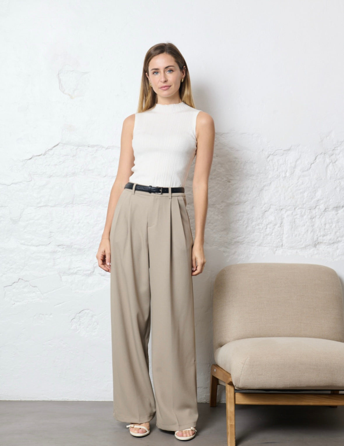 De broek is zowel geschikt voor een casual als meer verfijnde look, en de natuurlijke kleur maakt hem perfect voor elk seizoen. Komt met een riempje