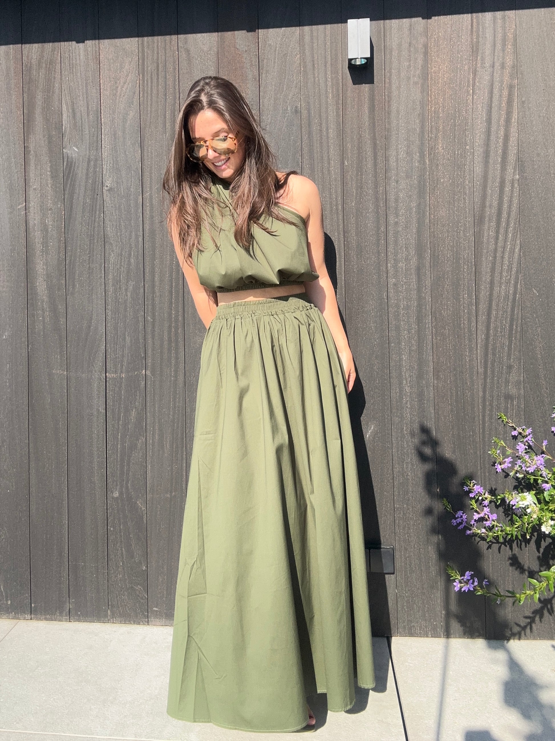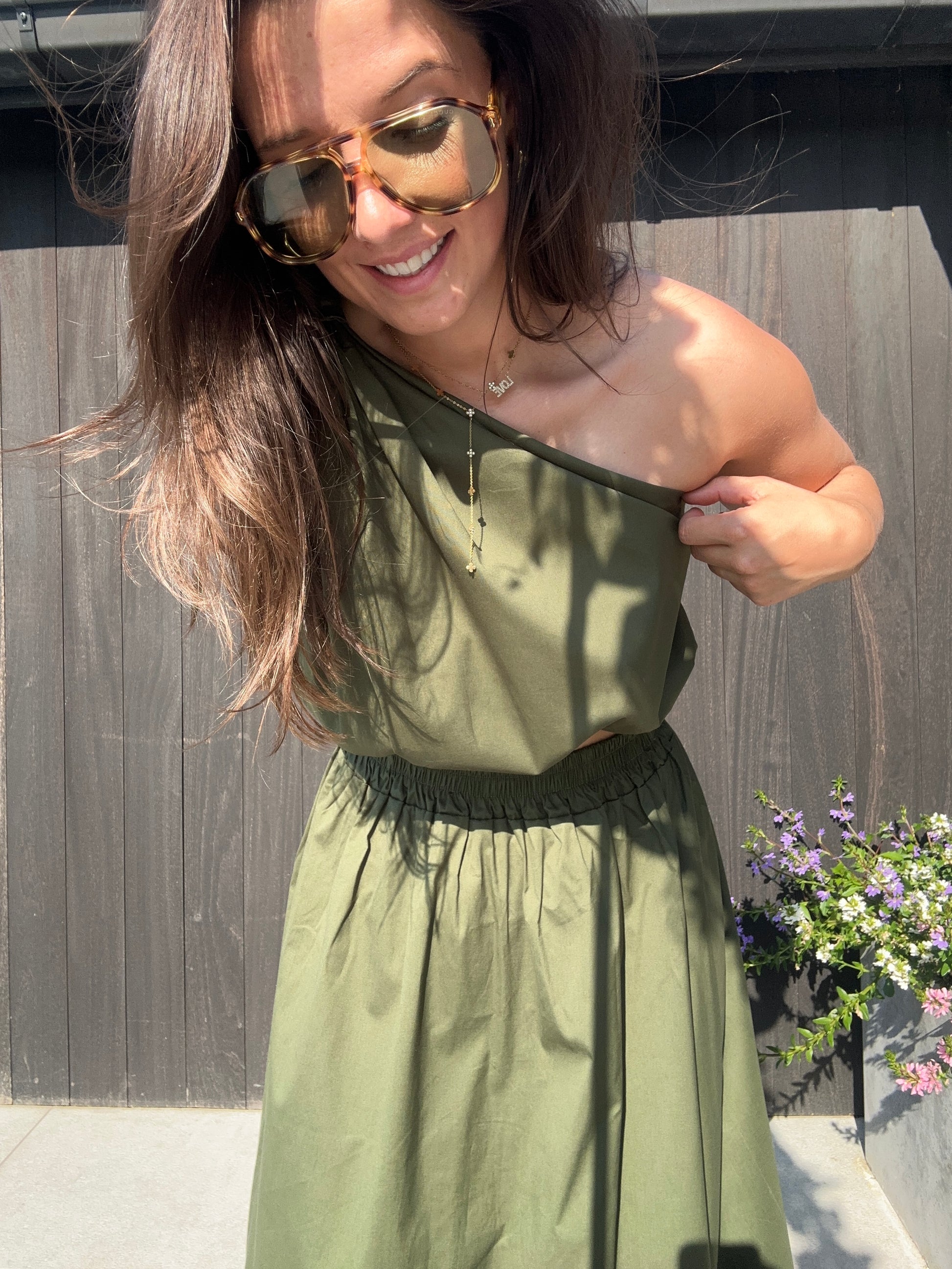 De Magalie set in kaki is een prachtige combinatie van een luchtige top en elegante rok. Deze set straalt moeiteloos stijl uit en is de perfecte keuze voor wie houdt van een vrouwelijke, comfortabele én chique outfit.