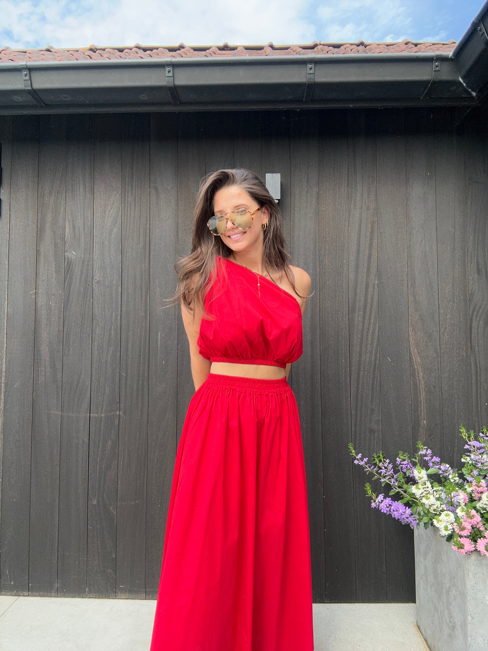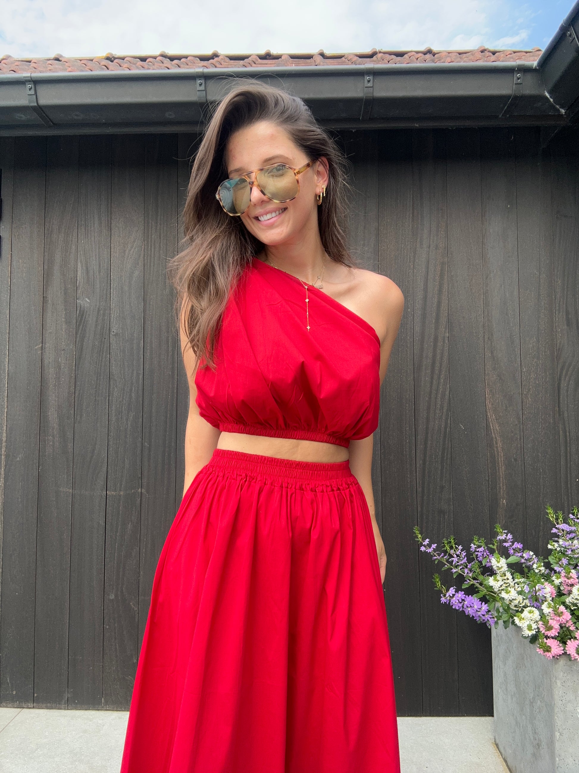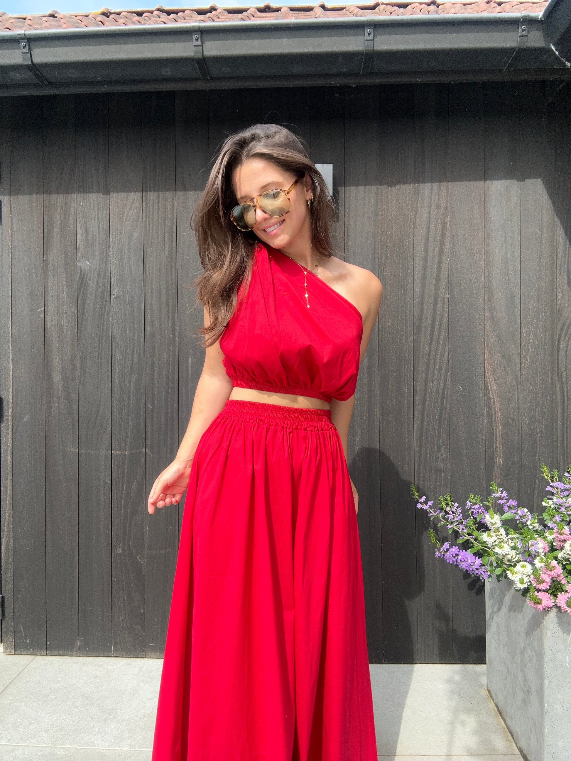 De Magalie set in rood is een prachtige combinatie van een luchtige top en elegante rok. Deze set straalt moeiteloos stijl uit en is de perfecte keuze voor wie houdt van een vrouwelijke, comfortabele én chique outfit.